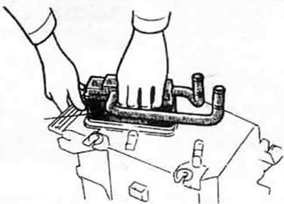 5. Снимите органы управления отопителем (см. раздел 12) и отсоедините шланги обогревателя от трубок радиатора. Приготовьтесь к сбору пролившейся жидкости.