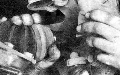 10.6. Извлекая внутренний конец оси из коробки передач соблюдайте осторожность (манжета находится очень близко к кромке шарнира и может быть повреждена монтировкой, вставленной слишком глубоко)