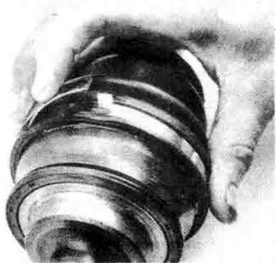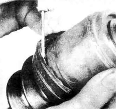 Примечание: Поскольку наружный шарнир выполнен неразборным, трудно удалить из него всю старую смазку и растворитель из подшипников после промывки. Но важно сделать работу хорошо, поэтому уделите ей достаточно времени.
