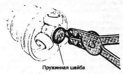11.6. С помощью специальных клещей снимите пружинное кольцо с конца оси