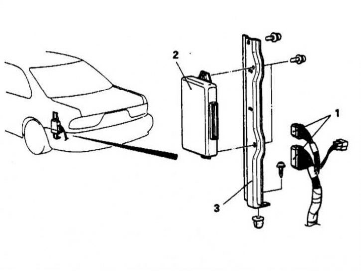 1 - Контактный разъем электропроводки ECU; 2 - ECU; 3 - Опорный кронштейн