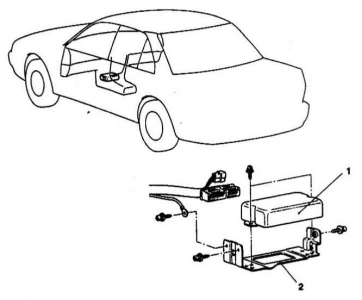 1 - ECU; 2 - Опорный кронштейн