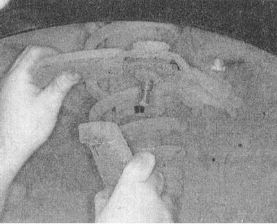 6. Выверните сквозные болты крепления осевых опор рычажной сборки.
