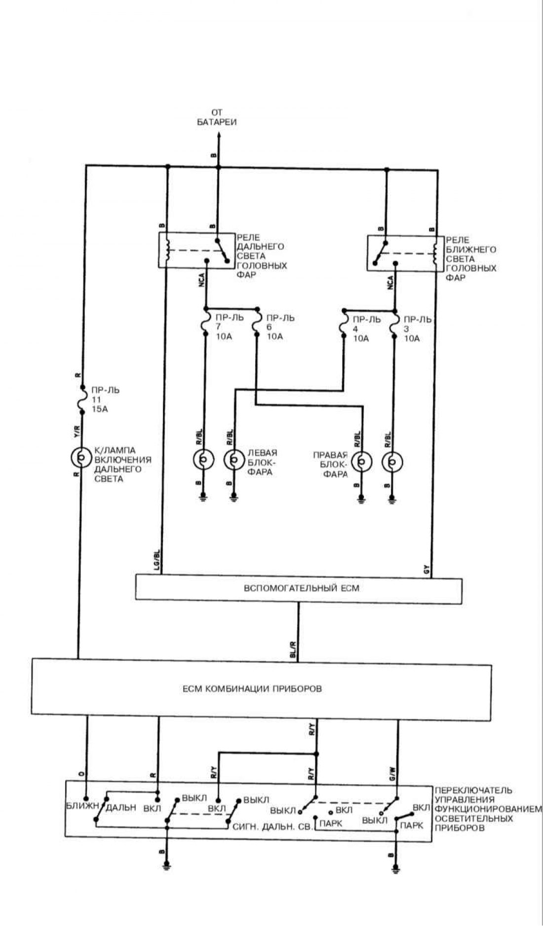Мицубиси Галант 6 и 7 (1987-1998): Электросхема фар (Diamante 1992-1995 г.)