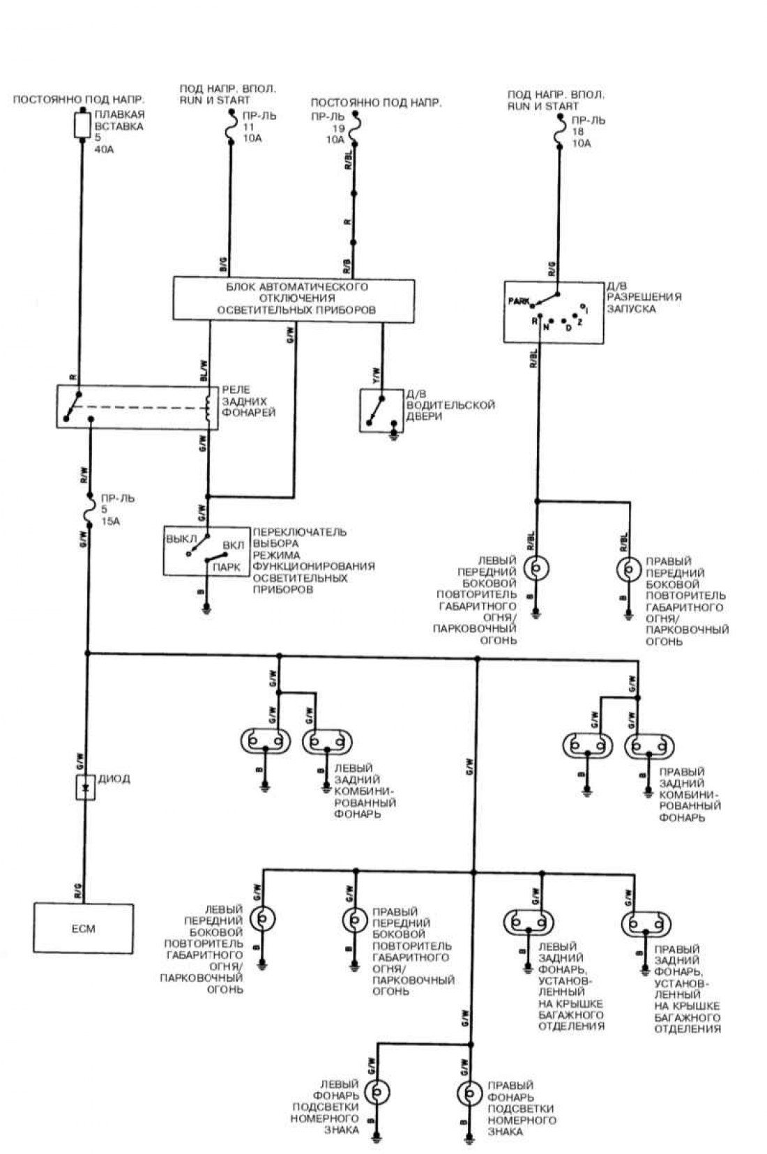 ➤ Принципиальная схема фонарей заднего хода
