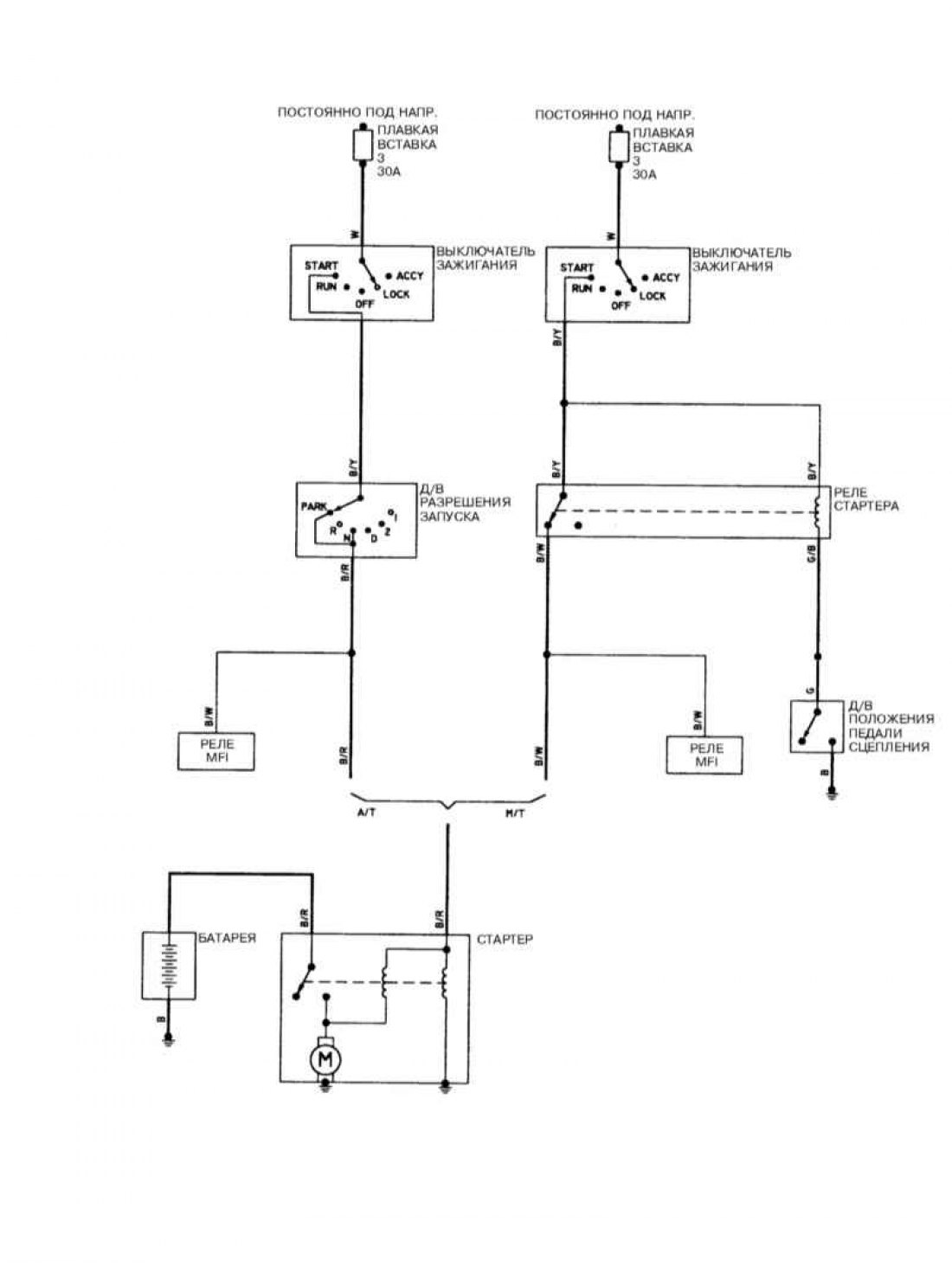 Мицубиси Галант 6 и 7 (1987-1998): Электросхема стартера (Mirage 1997-2000 г.)