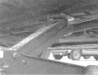 Ни в коем случае не заводите домкрат под балку задней панели пола! Подпорки заводятся под штатные передние и задние домкратные точки (см. выше).