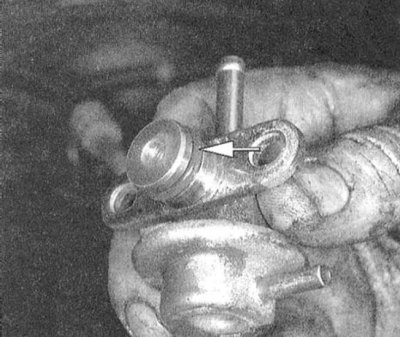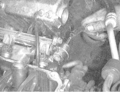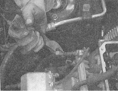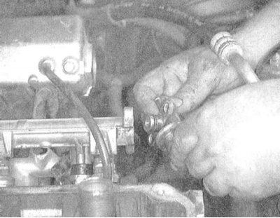 2. Отсоедините от регулятора давления вакуумный шланг и линию возврата топлива.