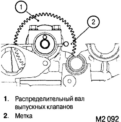 1. Перед установкой смажьте контактные поверхности распределительного вала (шейки, кулачки и шестерню) тонким слоем моторного масла (см. рис. М2 2.092).