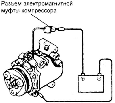 1. Отсоедините разъем электромагнитной муфты компрессора.
