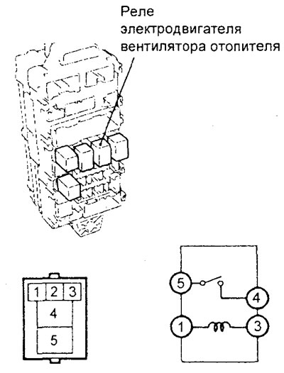 1. Проверка реле электродвигателя вентилятора отопителя.