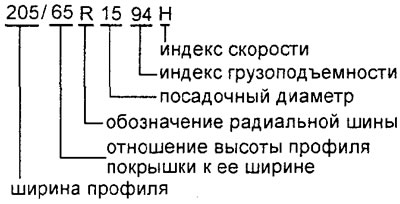 Если это обозначение отсутствует, то отношение равно 0,80...0,82. Данный размер выбирается исходя из таблицы "Маркировка шин и давление в шинах" и должен соответствовать размеру шин, рекомендуемому заводом-изготовителем. - R - обозначение радиальной шины;