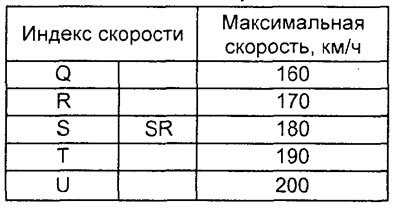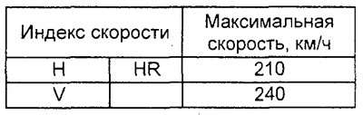 Таблица. Индексы скорости шин.