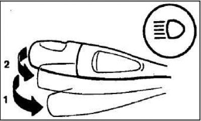 При незначительном перемещении рычага переключателя в положение 2 фары головного света загорятся, а после отпускания рычага – погаснут.