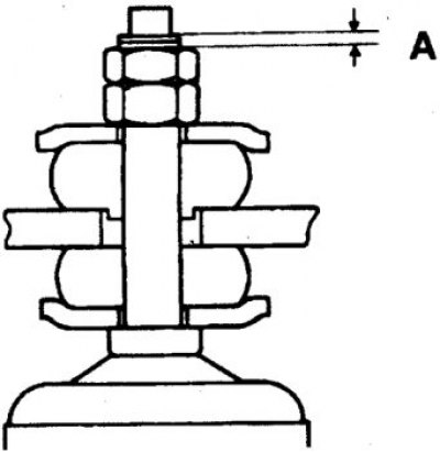 7. На автомобилях 1992-98 гг. затяните гайку верхнего крепления так, чтобы размер А=1–2 мм.