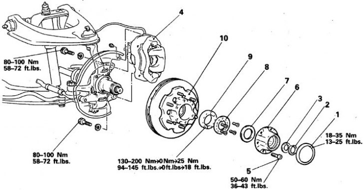 20. Затяните болты ступицы с моментом 50–60 Н·м., и снова измерьте усилие проворачивания ступицы. Разность усилий не должна превышать 1 Н·м., в противном случае снова разберите и соберите механизм блокировки.