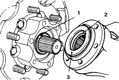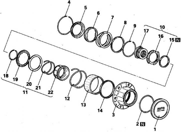 Устройство механизма автоматической блокировки ступицы (1983-98)