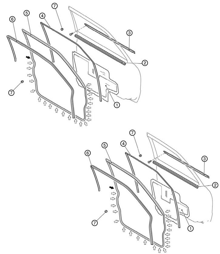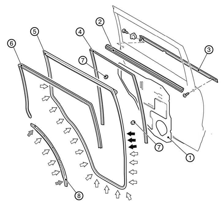 11. Снять внешнюю водонепроницаемую накладку двери (5).