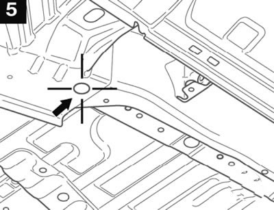 | 5 | Центр установочного отверстия переднего лонжерона | Круглое | 25 |