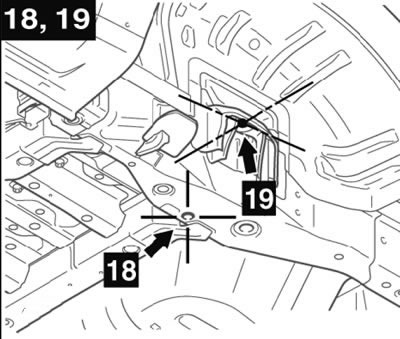 | 19 | Центр монтажного отверстия заднего амортизатора | Круглое | 19 |
