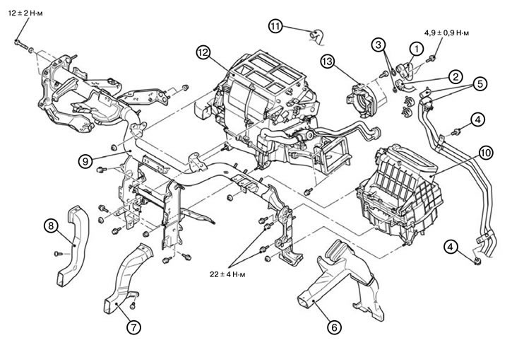 30. Снять блок отопителя в сборе (12).