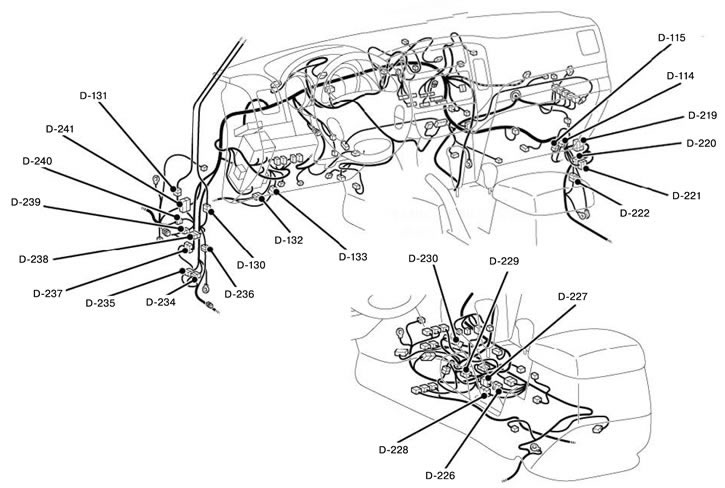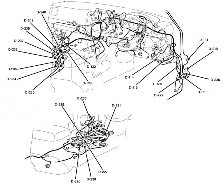 | D-230 | Соединение электропроводки панели приборов и напольной электропроводки |