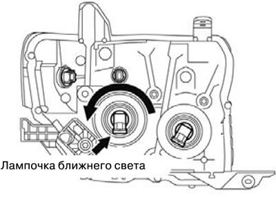 1. Отсоединить разъем, и провернуть лампочку ближнего света, чтобы снять ее.