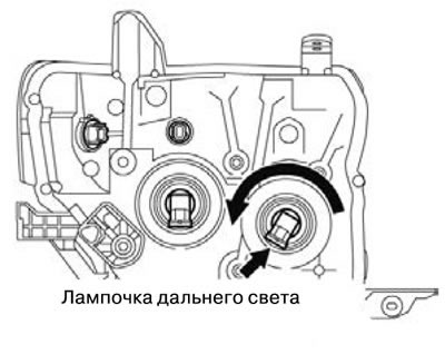 1. Отсоединить разъем, и провернуть лампочку дальнего света, чтобы снять ее.