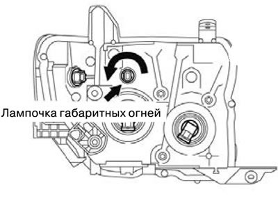 1. Отсоединить разъем, и провернуть патрон лампочки габаритных огней, чтобы снять ее.