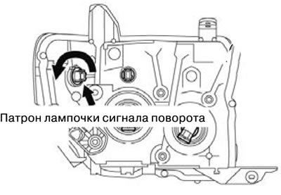 1. Отсоединить разъем, и провернуть патрон лампочки указателя поворота, чтобы снять ее.