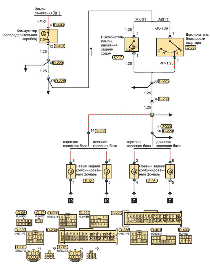 Мицубиси Паджеро 4 (2006-2021): Электросхема ламп освещения движения задним ходом