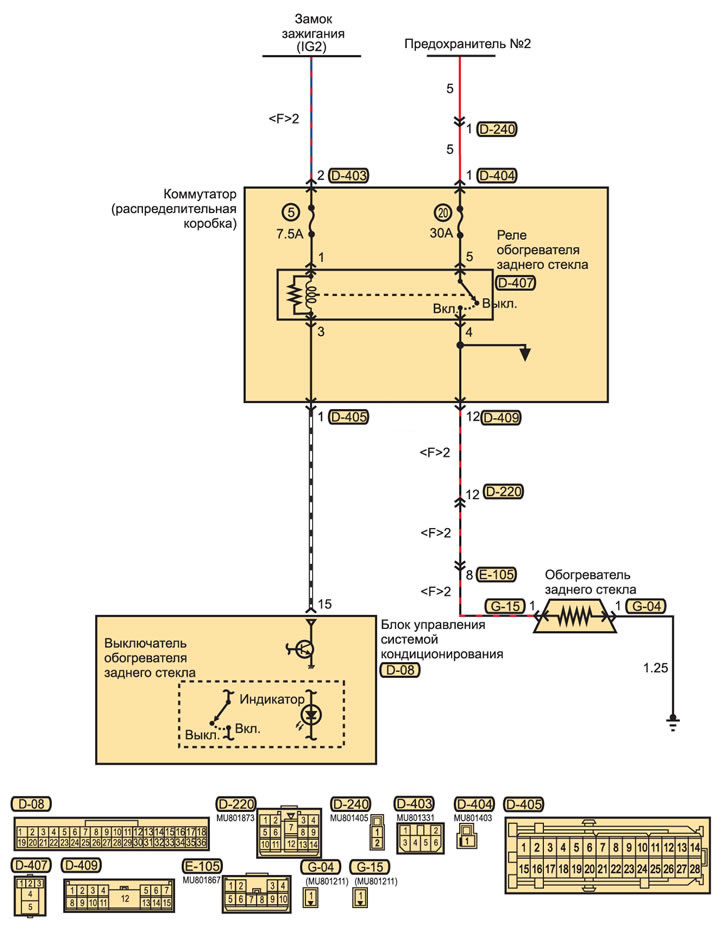 Мицубиси Паджеро 4 (2006-2021): Электросхема обогревателя заднего стекла