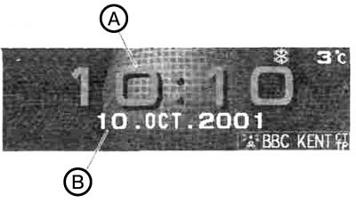 В автоматическом режиме местное время устанавливается автоматически по сигналам местных станций RDS. В этом режиме на дисплее аудиосистемы отображается символ «СТ» (А) (местное время передается с сигналом RDS).