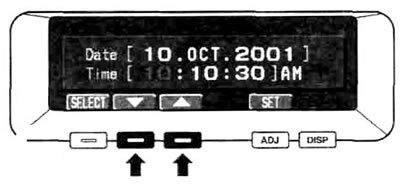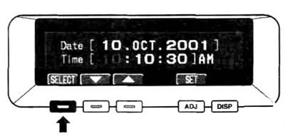 3. Для перехода к настройке месяца, числа, года, часов и минут нажимайте функциональную кнопку SELECT. При каждом нажатии кнопки SELECT происходит переход от часов к минутам, секундам, числу, месяцу и году.