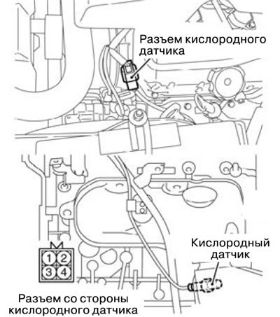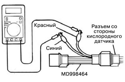 1. Отсоединить разъем кислородного датчика и подсоединить к разъему со стороны датчика специальный инструмент (жгут тестовых проводов).