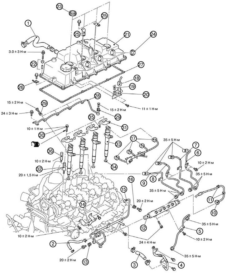 Снятие топливных форсунок и топливной рейки