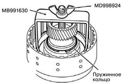 1) Установить специальные инструменты МВ991630 и MD998924 так, как показано на рисунке.