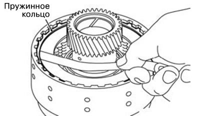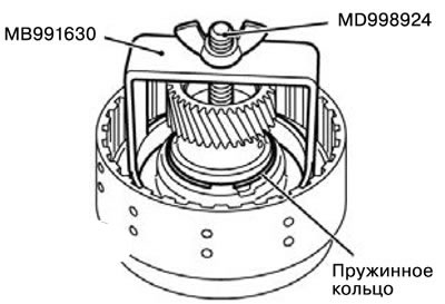 2) Сжать возвратную пружину, и снять пружинное кольцо.