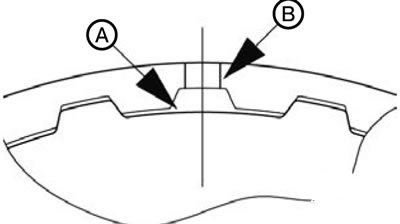 Примечание. При установке пластин муфты совместить часть без зубьев (А) с отверстие фиксатора муфты понижающей передачи (В).