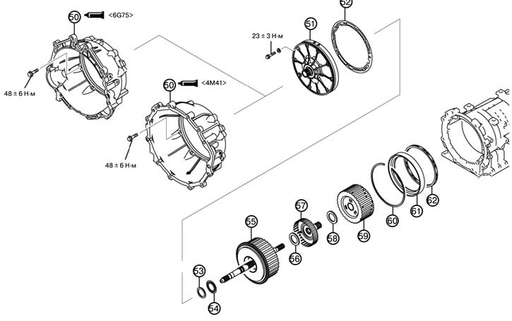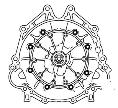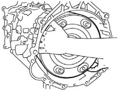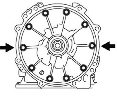 1) Вывернуть восемь крепежных болтов и снять корпус гидротрансформатора.