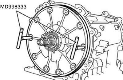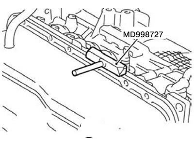 3) Снять масляный насос, когда специальный инструмент MD998333 будет полностью вкручен.