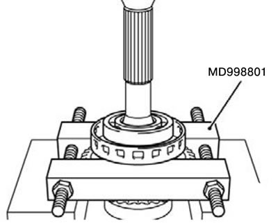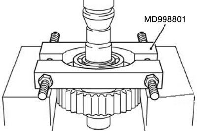 1) Закрепить шариковый подшипник при помощи специального инструмента MD998801.