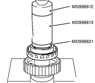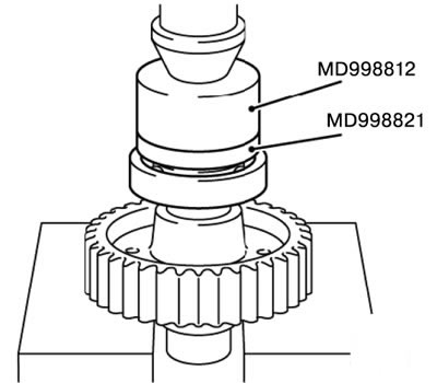 1) Установить шариковый подшипник при помощи специального инструмента MD998812 и MD998821.