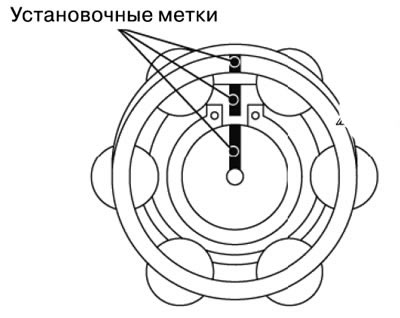1) Нанести установочные метки на приводном валу, внутреннем кольце ШРУСа «DOJ» и корпусе ШРУСа «DOJ», как показано на рисунке.