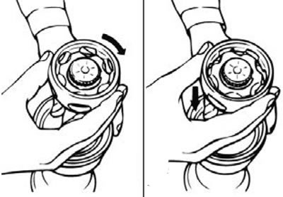 3) Снять корпус ШРУСа «DOJ» с внутреннего кольца ШРУСа «DOJ» в направлении указанном на рисунке.