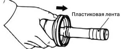 Примечание. Обмотать пластиковую ленту вокруг шлицов спаренного ШРУСа «DOJ» со стороны приводного вала, чтобы не повредить пыльник при снятии.