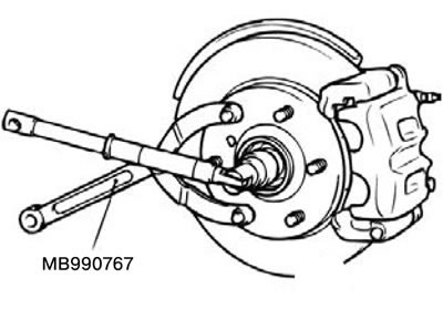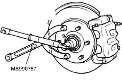 Внимание. Не нагружать подшипник ступицы переднего колеса весом автомобиля при ослаблении затяжки гайки оси привода колеса.