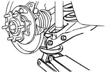 1) Сжать винтовую пружину при помощи напольного домкрата и завернуть крепежный болт нижнего рычага.