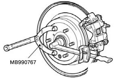 Внимание. Перед затяжкой гайки оси привода подшипник ступицы переднего колеса не должен быть нагружен весом автомобиля.