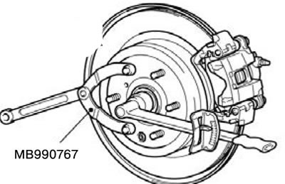 Внимание. Перед затяжкой гайки оси привода подшипник ступицы переднего колеса не должен быть нагружен весом автомобиля.